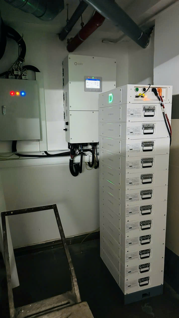 Hệ thống này kết hợp hệ thống hòa lưới và lưu trữ pin, phù hợp cho doanh nghiệp cần nguồn điện ổn định, đặc biệt khi mất điện. Hệ thống này cung cấp sự độc lập năng lượng cao hơn, nhưng chi phí ban đầu cao hơn.